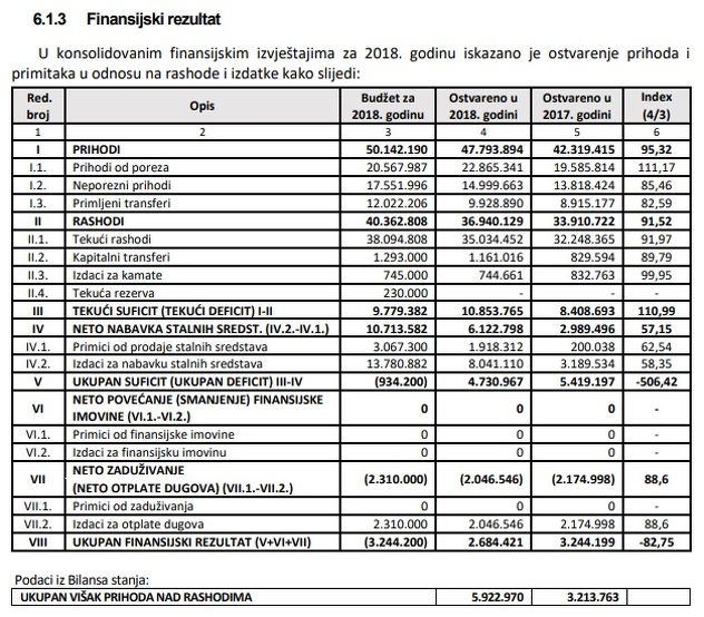 Revizori su istakli kako ne mogu potvrditi iskazani finansijski rezultat 2018. godine za iznos od 122.001 KM, kao ni ukupno iskazani višak prihoda nad rashodima za iznos od 1.617.719 KM, s obzirom na to da obaveze po pravomoćnim sudskim presudama nisu iskazane na propisanim pozicijama rashoda i obaveza, a što nije u skladu sa članom 76. Zakona o budžetima u FBiH.
