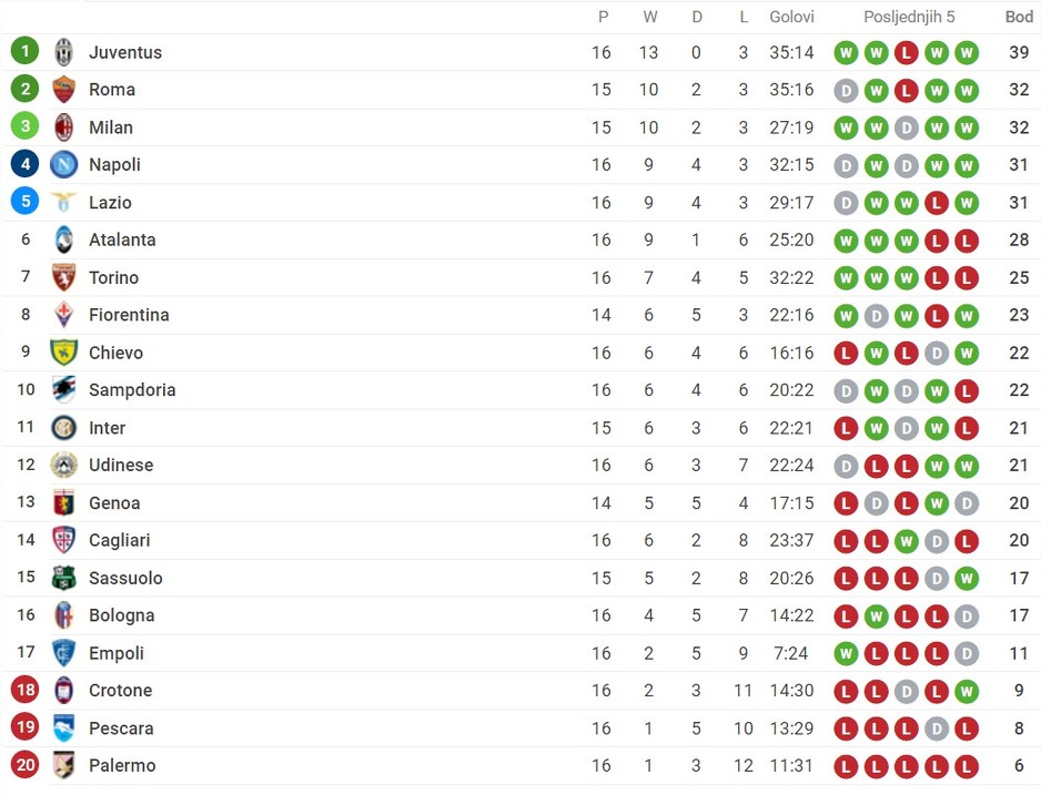 Bologna i Empoli, za koji je čitav susret odigrao Rade Krunić, su odigrali susret bez pogodaka, dok je Atalanta poražena kod kuće od Udinesea sa 1:3 (Kurtič 47. – Zapata 45., Fofana 72., Thereau 87.). Ervin Zukanović je bio na klupi za rezervne igrače domaće ekipe.